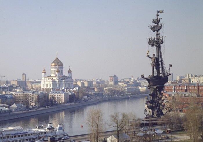 Воздвигнут в 1997 году по заказу Правительства Москвы на искусственном острове в развилке Москвы-реки и Водоотводного канала. Общая высота монумента составляет 98 метров.
