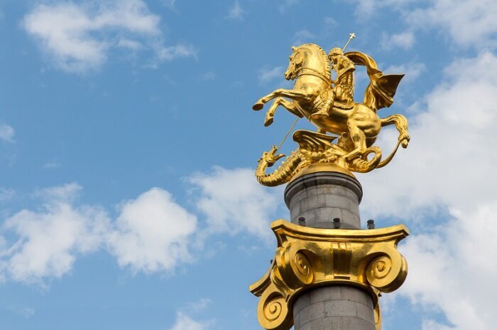 Эта скульптура установлена на 30-метровой колонне на площади Свободы в Тбилиси – Святой Георгий является покровителем Грузии. Монумент был открыт в апреле 2006 года.