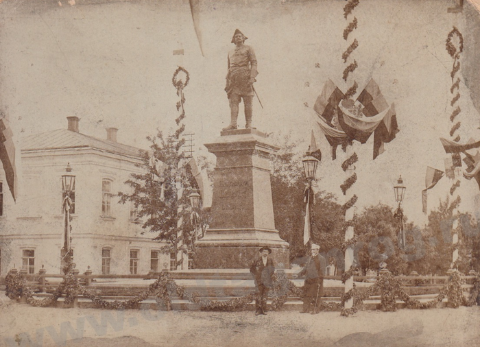 Главная заслуга во всем этом принадлежит П. Ф. Иорданову, который, можно сказать, один вынес на своих плечах трудное дело — почти без денег создал памятник, и не убогий, а один из лучших в России. Громадную услугу в этом оказал Таганрогу верный гражданин города А. П. Чехов, через которого П. Ф. Иорданов сносился со скульптором Антокольским.
