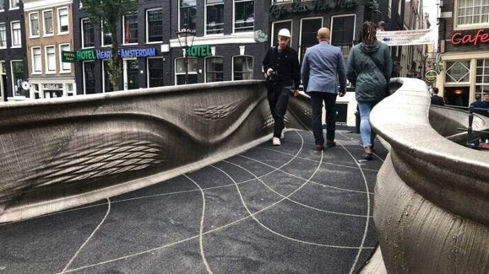 Саму же конструкцию из нержавеющей стали 3d-принтеры возводили слой за слоем. После этого были проверки моста, где сотрудники проверяли своё творение на прочность: прыгали и бегали по нему.