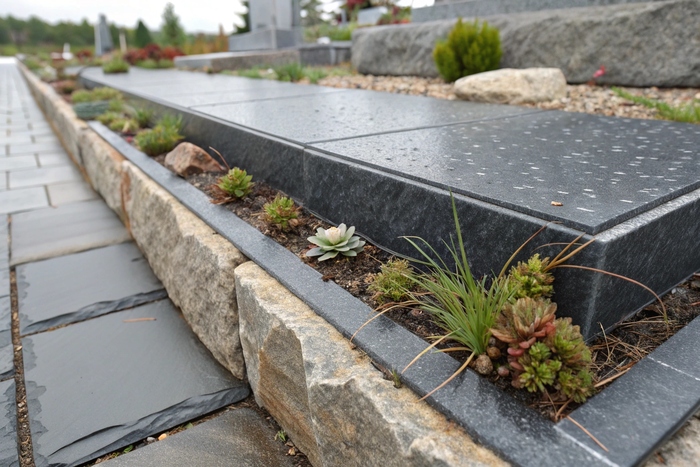 Зона памяти должна иметь четкие границы, обозначенные поребриком, камнями или растениями. Это создает ощущение завершенности и ухоженности.
