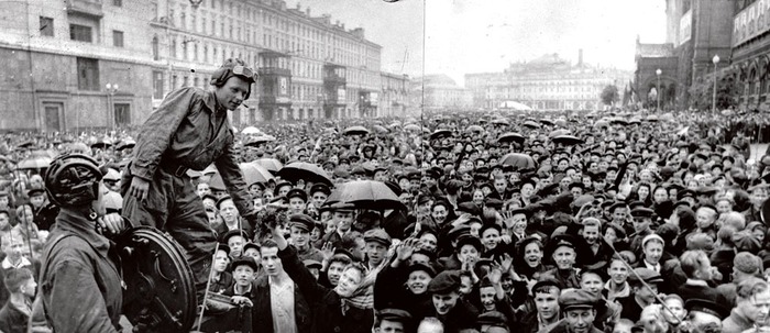 После варварской бомбежки жилых кварталов города на проспекте 25 октября. Автор - М. Трахман. Март 1943 г. (Криво склеил из двух фотографий)