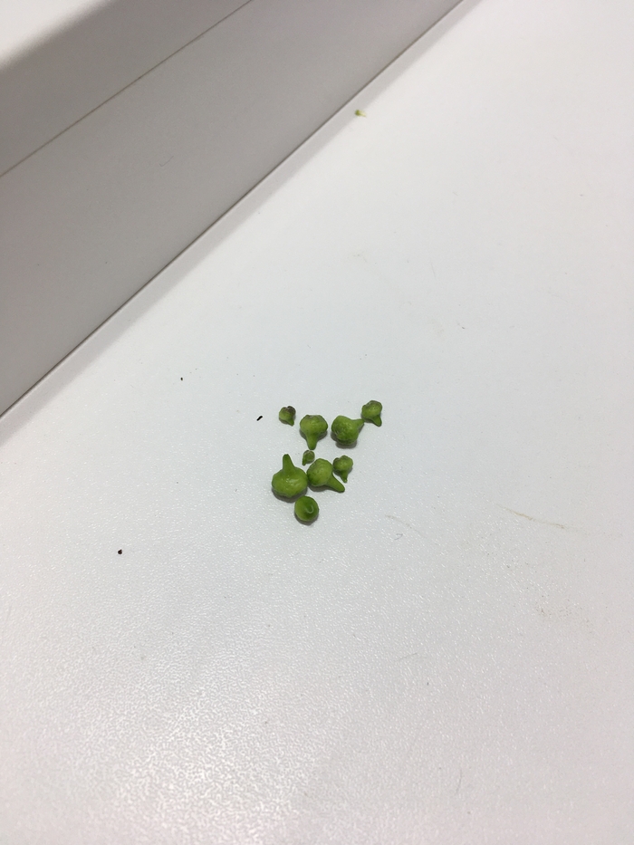 2. Черенок номер 2. У него явно дела получше, он простоял со своими листочками месяц и не тратил силы на новые листья, нарастил корни и решил цвести *рукалицо*