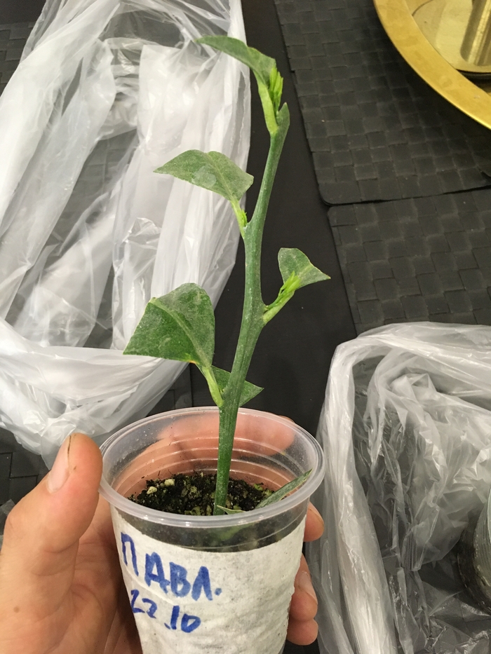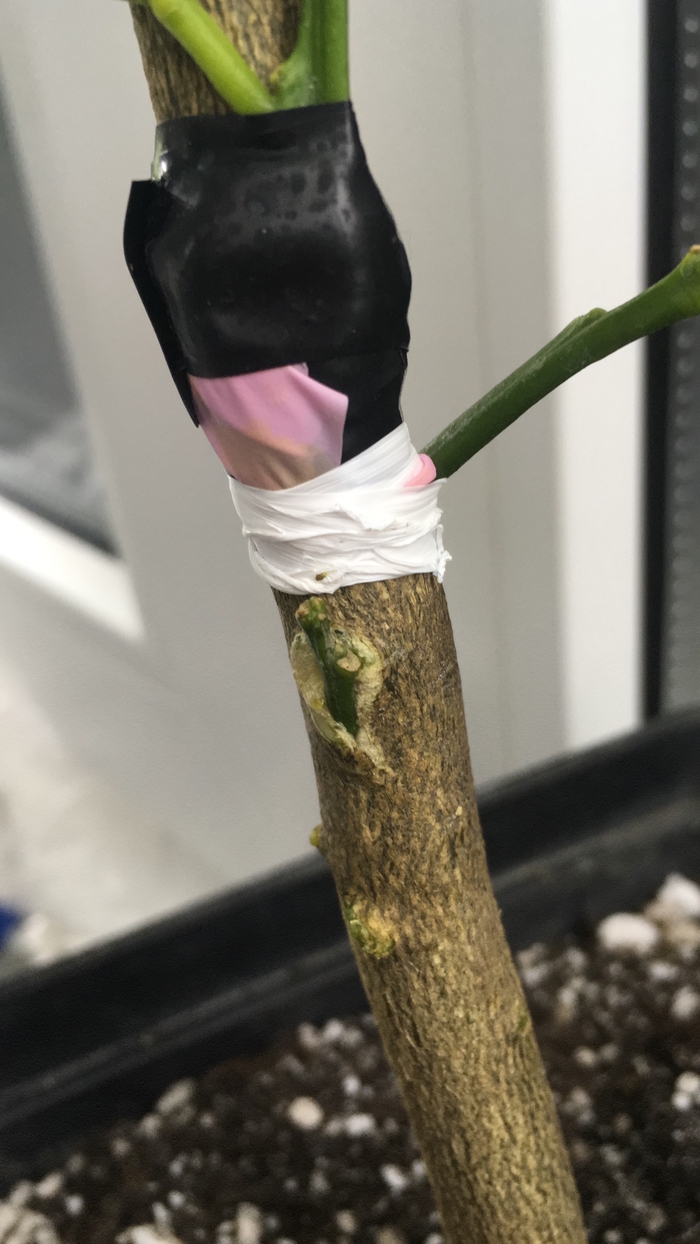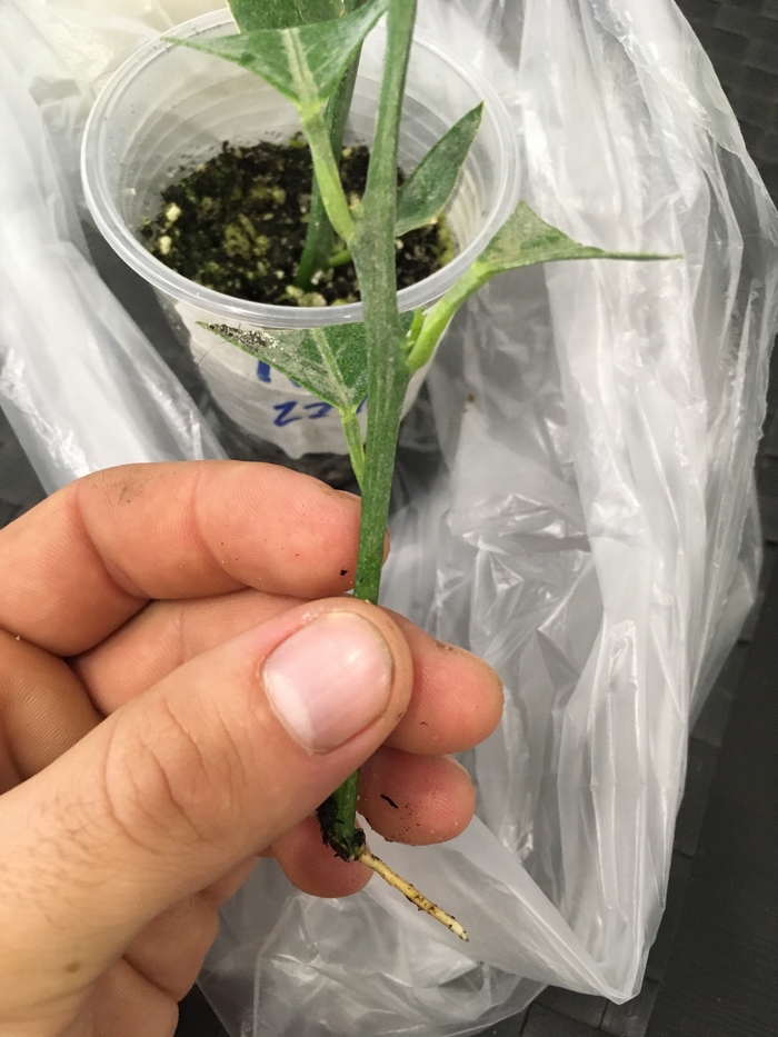 Поставлена на укоренение 28.09. Имеет пару небольших корешков. Будет в дальнейшем использована, как новый подвой.