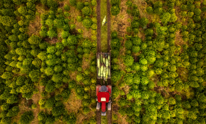 Там же в Бангладеш рабочие погрузили бревна на продажу.