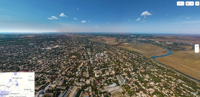 Открываем яндекс карты, выбираем панорамы улиц. И мы можем выбрать вид с воздушного шара.
