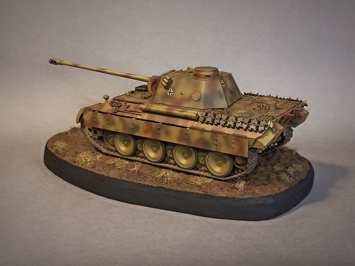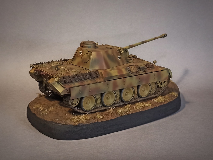 Сделал небольшую и простенькую виньетку для своей "Пантеры". Не нравится мне, когда "грязные" танки (пусть даже чуть-чуть грязные), просто стоят на полке. Люблю, когда "испачканные" танки погружены в сюжет, пусть и не большой.