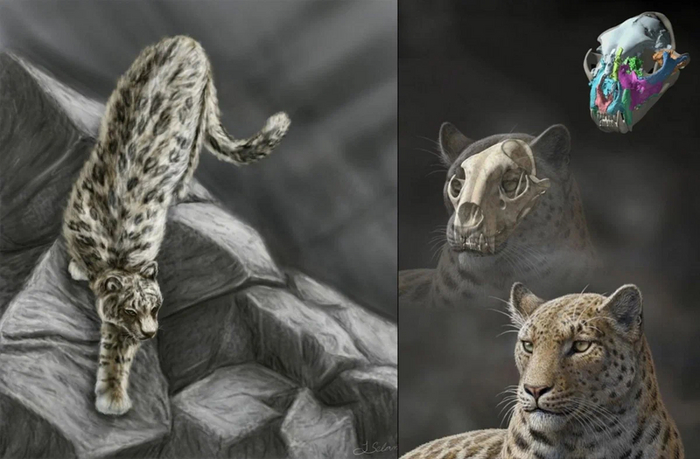 За поиском деда пантер нужно отправляться в Тибет — именно там нарыли череп самой древней известной науке пантеры. Её возраст 4.1–5.95 млн лет — это конец миоценовой эпохи. Кроме верхней части черепа и следов песка, которым котик-пенсионер посыпал дорожки, не нашли ничего. Даже нижнюю вставную челюсть этот старый где-то профукал! Но этого хватило палеонтологам, чтобы понять — перед нами пантера. Да не простая, а одна из самых древних!