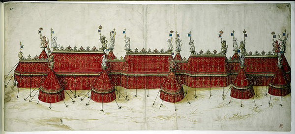Масштаб событий трудно себе представить. Только для рыцарских турниров на «поле золотой парчи» были приготовлены 1500 копий, 1000 мечей для конных поединков и 600 двуручных мечей.