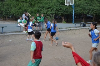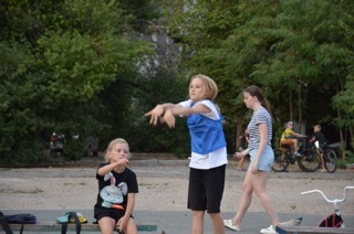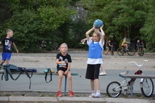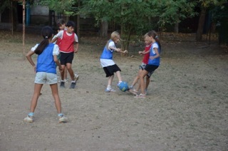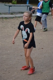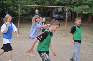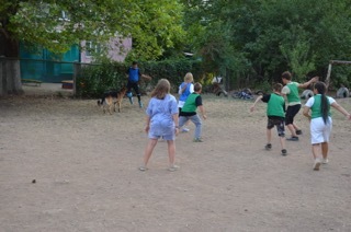 Правило «игры в собачку» просты – у кого Шик перехватил мяч отжимается от земли пять раз (девочки от скамейки).