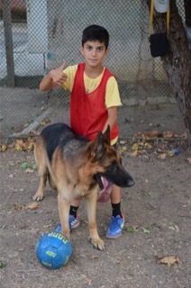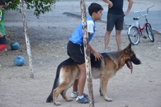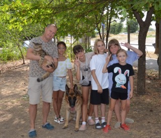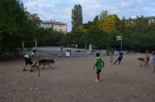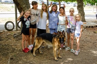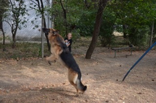 Когда заканчивается тренировка мы играем во дворе в прятки. Шикбарс нюхает каждую подставленную ему обувь, потом я ему закрываю глаза и уши, а дети разбегаются по кустам и укрытиям. Команда «ищи», и овчарка идёт по следу каждого, когда находит – обозначает – и бежит искать следующего. Визг счастливых детей слышен по всему району. Мамы очень довольны, что в это время они могут заниматься своими делами. Ну и ладушки.