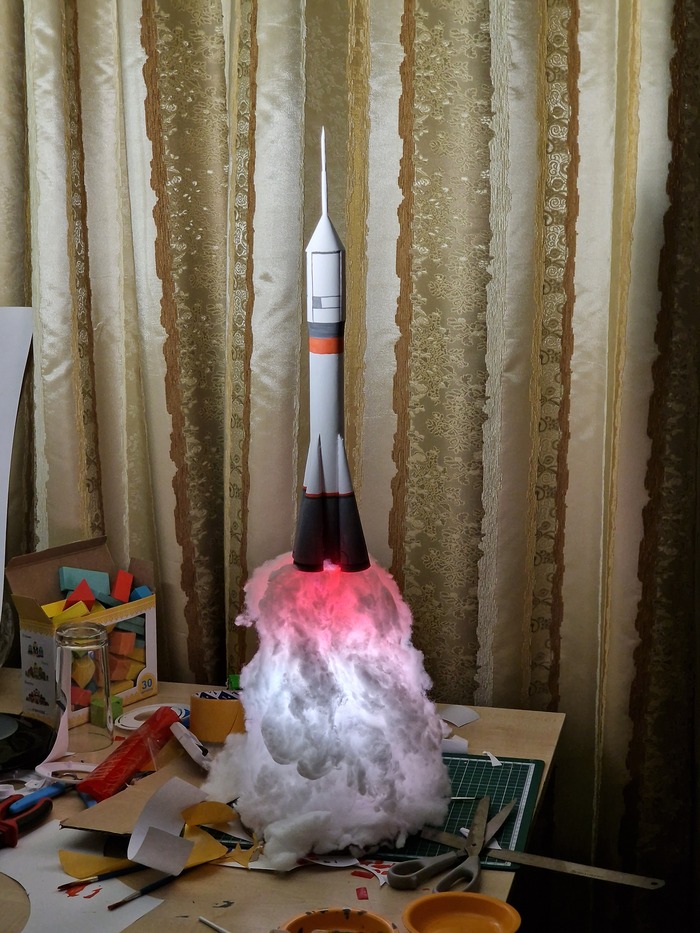 Этот бумажный макет из серии поделок для садика, чтобы оформить уголок на день космонавтики. В предыдущем посте полноценная диорама тоже на тему дня космонавтики (X-files).