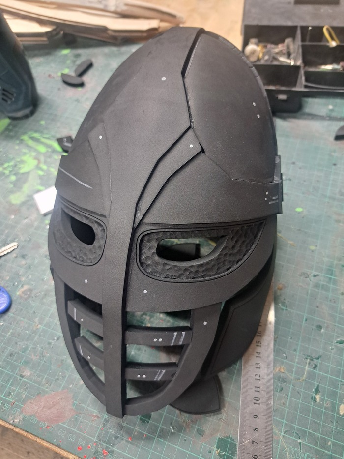Просто хочу показать, над чем сейчас работаю. Развёртку взяла с Пепакуры (маска Бонни из Payday). Задумывалась как концертный образ, поэтому и окрас мрачный такой. Нос увеличила, челюсть разрезала, теперь думаю как сделать её подвижной. Пока всё…