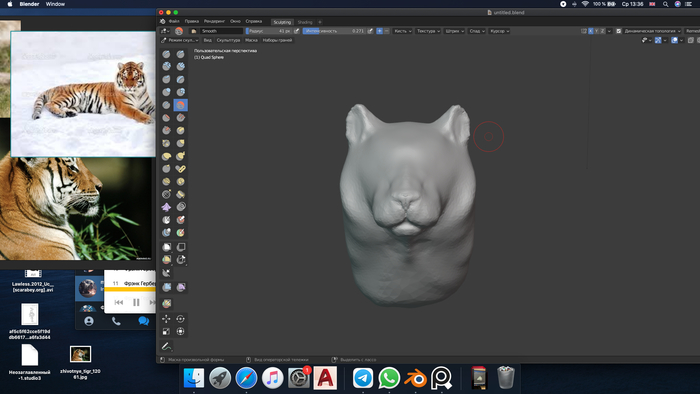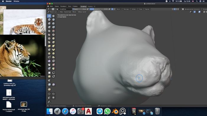 Делается это все в Блендере, за основу берутся простые геометрические формы, из которых умелая рука скульптора буквально как из пластилина вылепливает тигра: