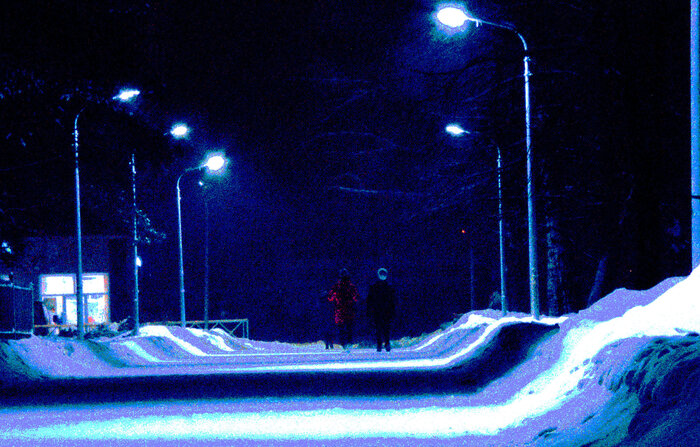 С собакой по парку сквозь вьюгу