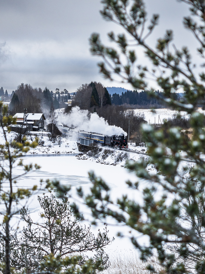 В общем, залипал я знатно. Здесь стоит сказать спасибо моей жене, которая поддерживает меня в моих увлечениях и интересах. Стоит определённого терпения принимать тот факт, что, приехав в такой интересный город, как Сортавала, мы не пойдём сразу смотреть историческую часть и оценивать вкусные ресторанчики, а будем снимать эти паровозы утром и вечером, ещё и в разных местах, и ещё и на три камеры одновременно – с земли и с воздуха!