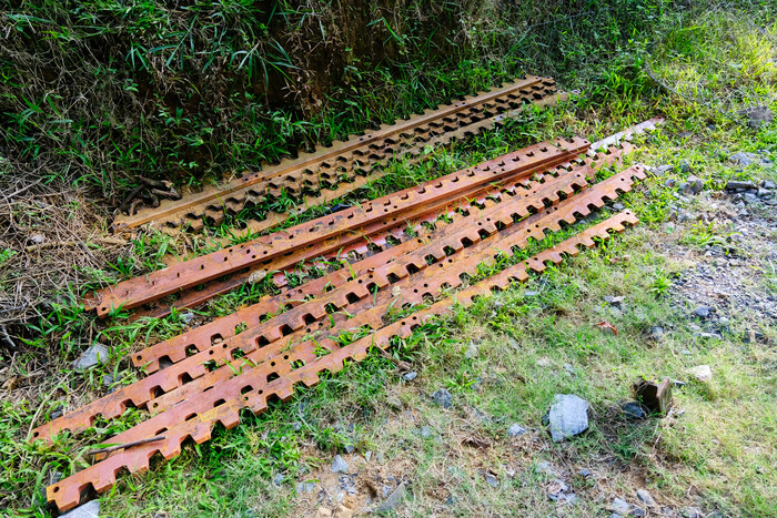 Поезд цепляется шестеренкой за зубчатый рельс. Это обычная практика на железных дорогах с крутым уклоном.