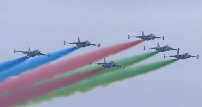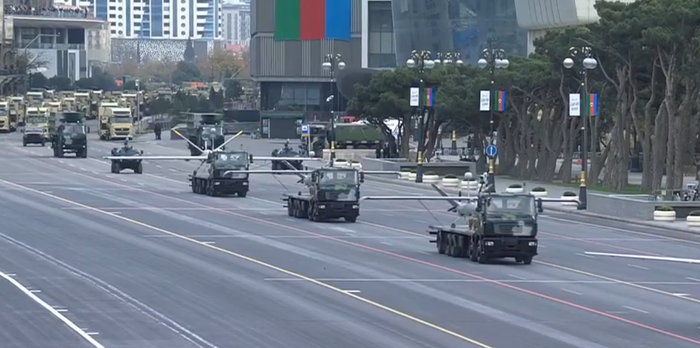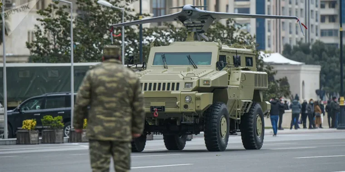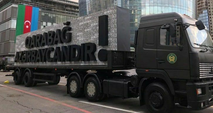 Стенд установлен на военной технике Вооруженных сил Азербайджана.