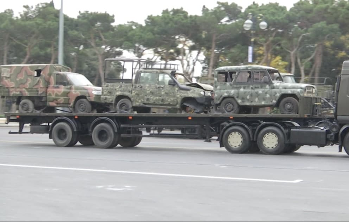 Изготовлен огромный стенд, на котором закреплены номерные знаки вражеских автомобилей и техники, уничтоженных Азербайджанской армией в Отечественной войне.