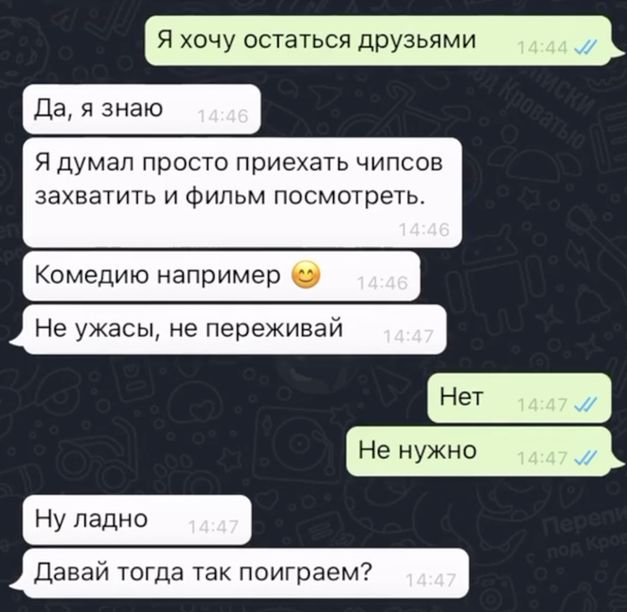 Слишком настойчивый парень пишет девушке, которая ему нравится. Однако девушка не желает с ним общаться и всячески намекает ему на это, но этот парень намеков явно не понимает.