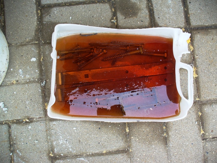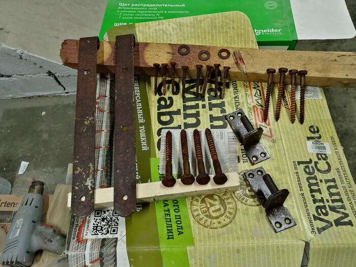 Специально, для создания аутентичности состариваю металлические детали с помощью химии.Навесы и крепеж .