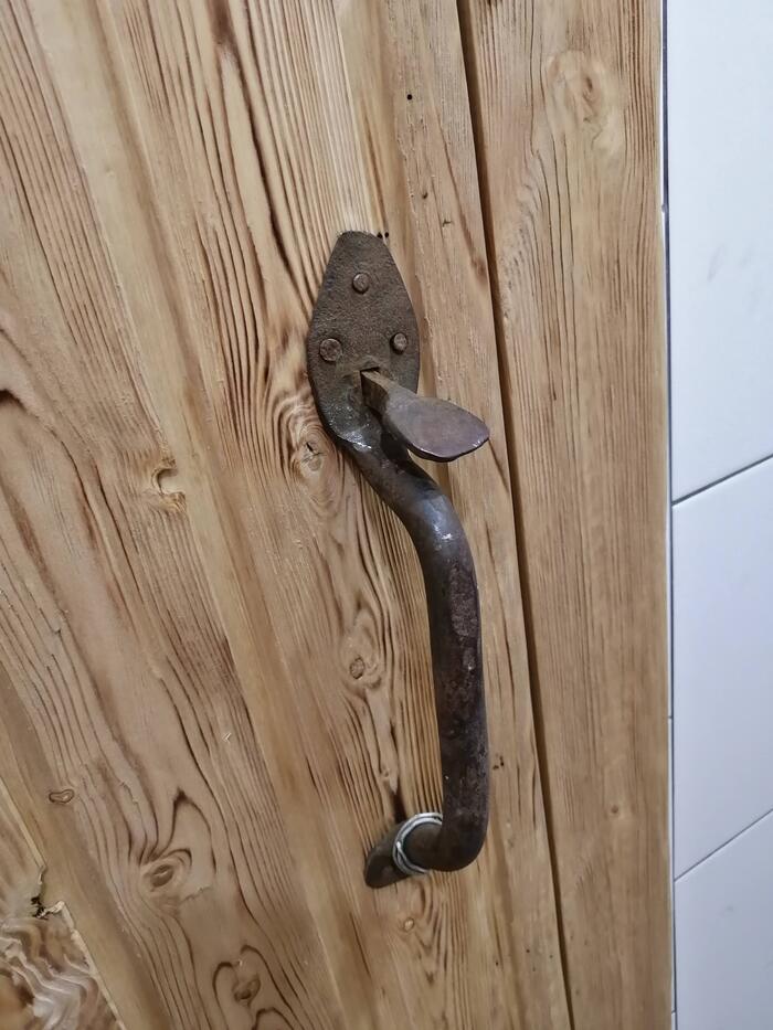 Ручка изнутри- ветка от вишни. Размер такой, что не промахнешься.