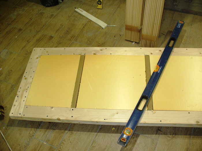 Фиксирую геометрию. На внутреннюю сторону поперек накручиваю рейку 20мм.