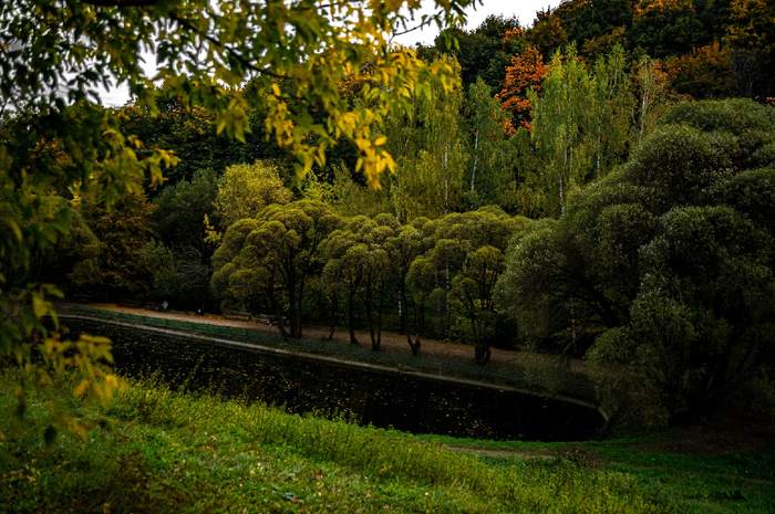 Зашла я как-то в парк Коломенское со стороны ул. Новинки и попала в объятия речушки Жужи. Над нею изящно склонились плакучие ивы. Река Жужа протекает прямо вдоль улицы Новинки, что обрамляет парк Коломенское с северо-западной стороны. Эта небольшая речушка впадает в Москва-реку прямо на территории заповедника Коломенское.