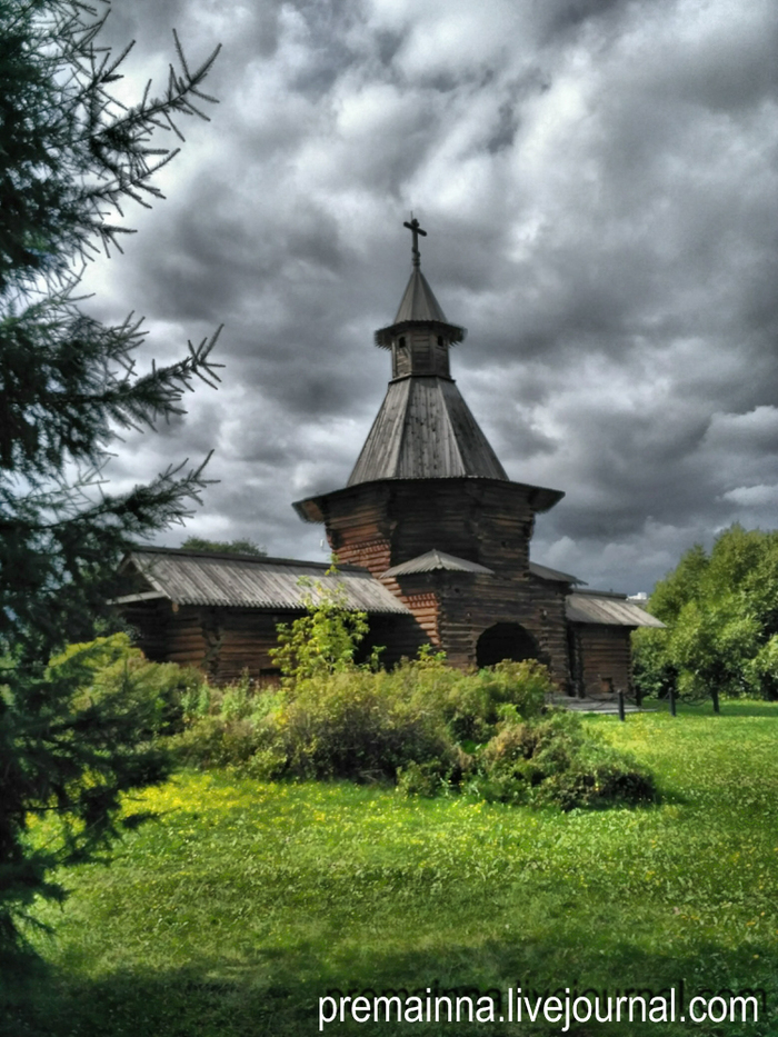 А вон вдалеке выглядывает ещё деревянный памятник старинного русского - Церковь Георгия Победоносца.