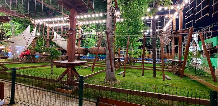 Прошлись по Ривьера парку, оказался обычный парк аттракционов с кучей платных штук и уголком с альпаками (тоже платный, естественно). Мы же умилялись котикам и удивлялись разным листьям на одной ветке дерева, как будто скрестили лавровишню с остролистом, любовались клумбами и различными инсталляциями.