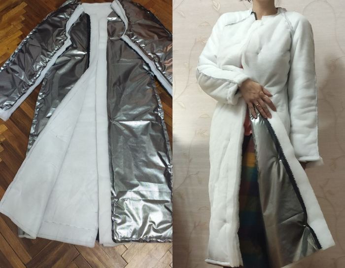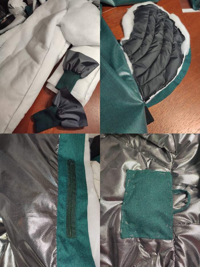 Вместе с выкройкой был приложен мастер-класс по шитью парки, в котором утеплитель пришивался к подкладу, основная ткань сшивалась отдельно, а потом всё это соединялось вместе в нескольких местах. Так я и делала (обычно утеплитель пришивают к основной ткани, но узнала я об этом слишком поздно).