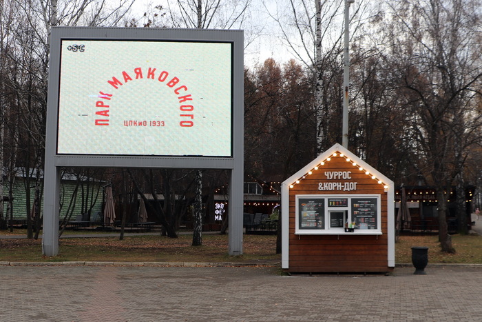 И вот мы выходим на центральную аллею. Видео-экран, с одной стороны.