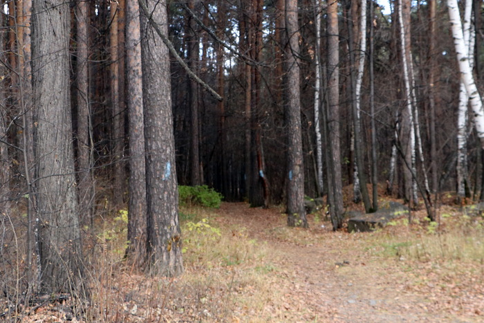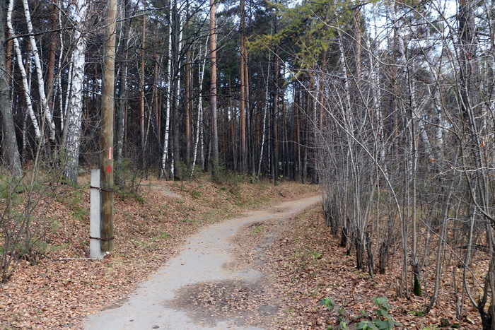 Аллейки и тропинки. Цветные метки на столбах и деревьях - разметка будущих лыжных трасс.