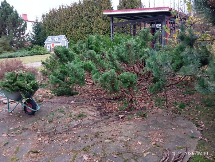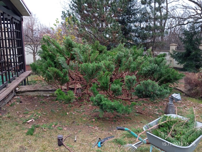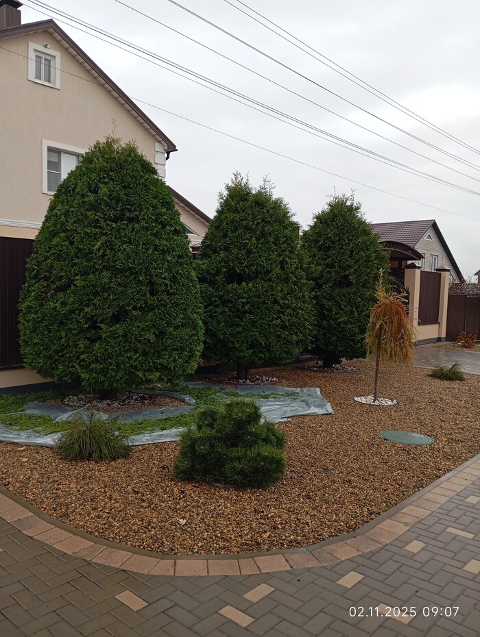 В целом, на стрижку 5 туй высотой 4 м ушло 4 часа. И ещё час на поддерживающую стрижку 5 можжевельников по 3 м)