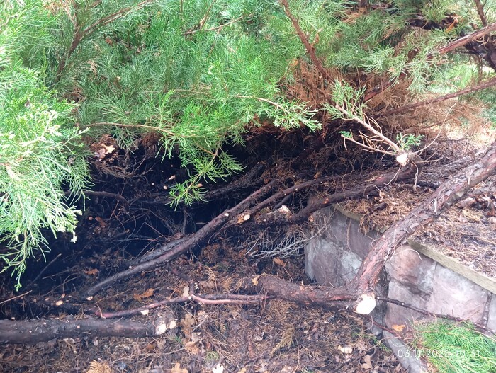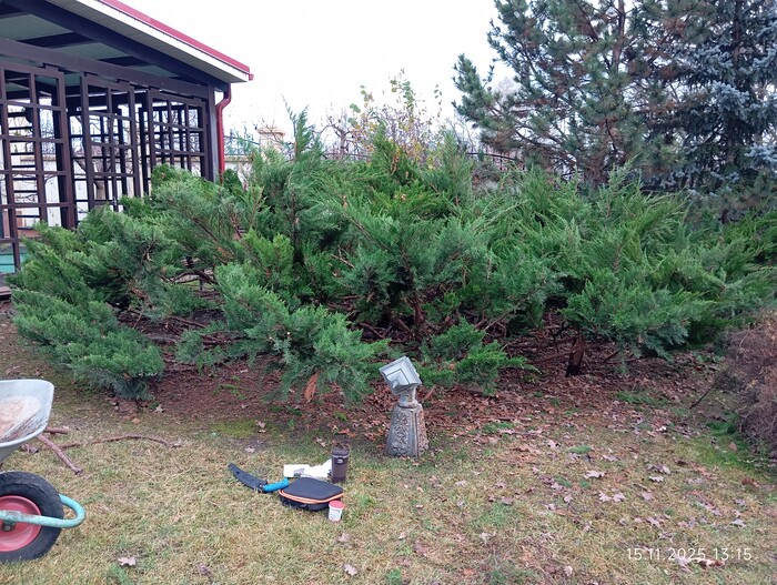 Топ-5 вопросов в моей практике — что делать с зарослями можжевельников? Часто дизайнер/владелец участка высаживает группой мааалееькие (контейнер С3-Р9) можжевкльнички группой, проходят годы... И получается что-то типа такого: