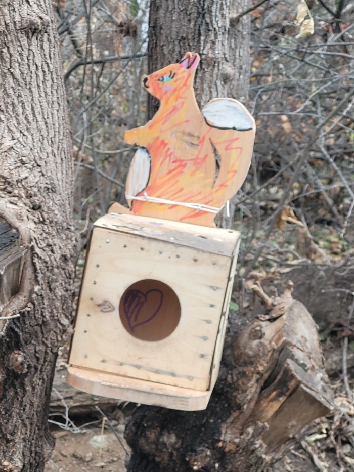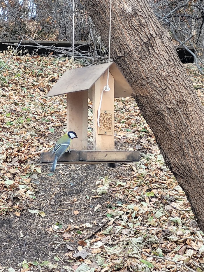 Вдоль этой аллеи развешаны и установлены множество кормушек для птиц и белок.