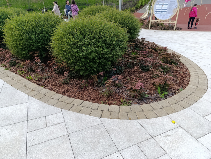 Важна контрастность цветов и резкая смена материалов тротуара.
