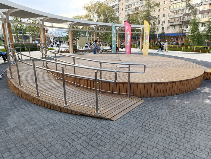 Детские площадки, шахматные столы, велодорожка и прокат специальных велосипедов, высокие клумбы для общественного огорода - все доступно для людей с ОВЗ.