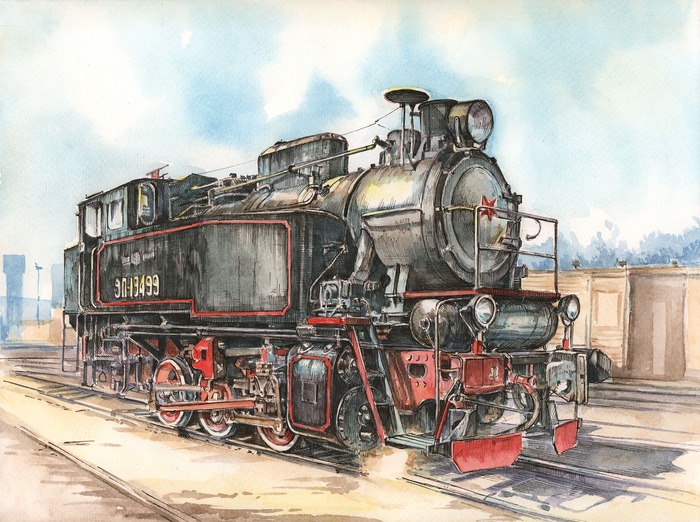 Недавно была выложена на пикабу картина с паровозом (здесь), только там он магистральный, а здесь изображен промышленный.