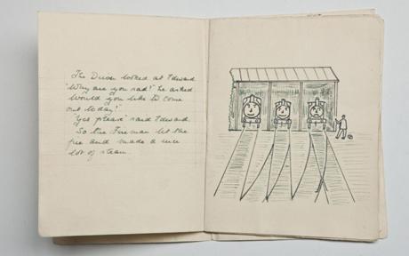 Священник всегда приветствовал Кристофера, заходя в его комнату, рифмовкой "Down by the Station". Одним днём Уилберт на основе рифмовки нарисовал стоящие в один ряд на станции паровозы, и для большего удовольствия одарил их лицами с разными эмоциями. Особенно внимание Кристофера привлёк паровозик с печальным лицом, потому что он разделял с ним его настроение, и он начал задавать отцу много вопросов об этом паровозике, в том числе как его зовут. И первое имя, пришедшее на ум Уилберта, было "Эдвард". Но вопросы всё продолжались и их было больше, чем ответов, поэтому он написал небольшой рассказ "День Эдварда", и прочитал его Кристоферу. Сынишке он очень понравился.Через некоторое время Кристофер захотел послушать продолжение, и его любящий отец написал ещё два рассказа - "Эдвард и Гордон" и "Боязнь дождя", причём "Боязнь дождя" была основана на другой рифмовке. Кристофер очень часто просил снова прочитать ему эти рассказы, даже после выздоровления. Уилберт записывал свои три истории на обратной стороне старых церковных циркуляров, иногда зарисовывая картинки.