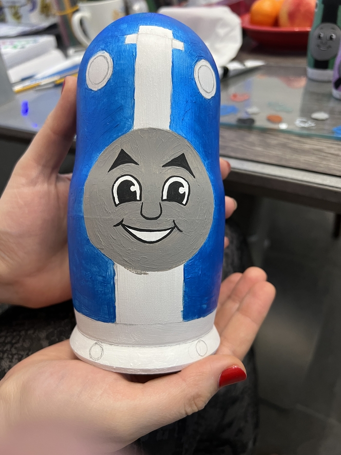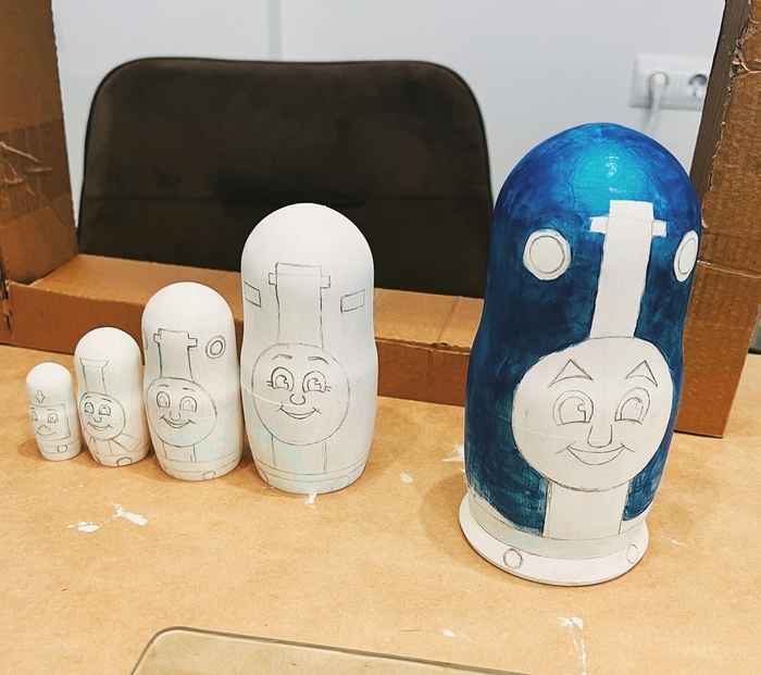 Заранее прошу меня понять и простить за отсутствие подробного описания процесса т.к. наставник из меня так себе, да и я далеко не профи в этом деле, расписывала матрешек впервые :) по просьбе сына, расписать ему матрешек с его любимыми персонажами из мультфильма про паровозика Томаса)