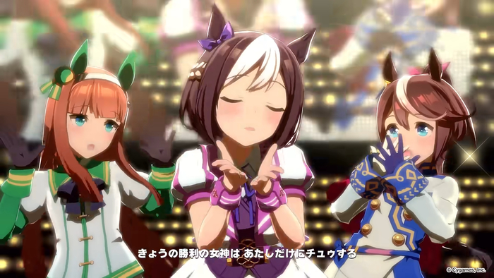 Арт отсылает к франшизе Uma Musume: Pretty Derby. А именно к исполнению песни Umapyoi Densetsu.