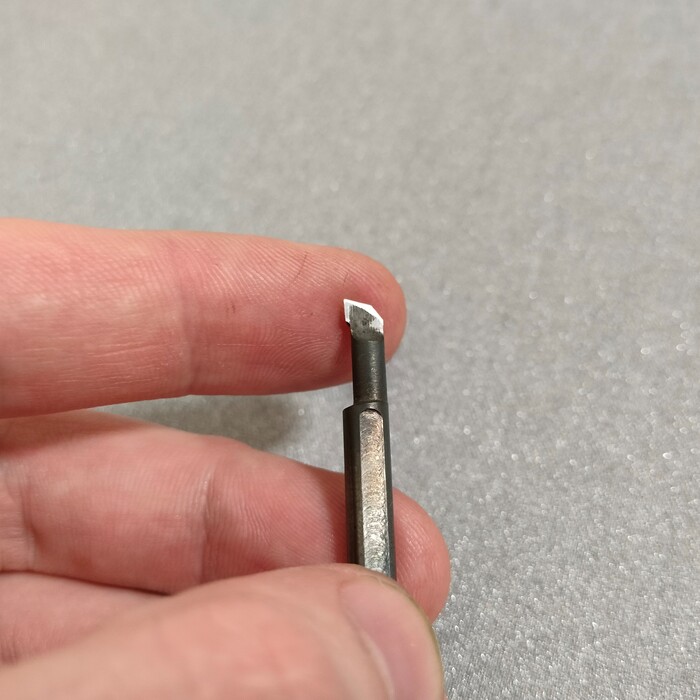 Для этой детали пришлось изготовить резец, который сможет подрезать внутренний угол с минимальным скруглением. Резец выполнен из Р6М5. Им можно работать как снаружи заготовки, так и внутри. Изготавливал впервые, результатом доволен. Для мелких деталей очень удобен и, как оказалось, ещё не раз пригодится в работе: