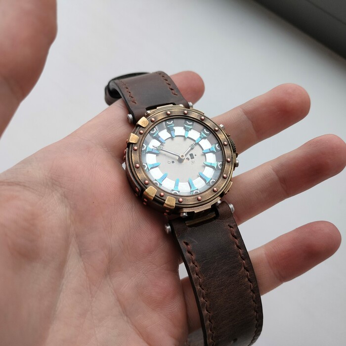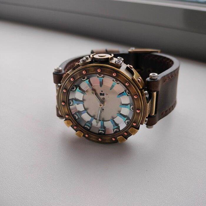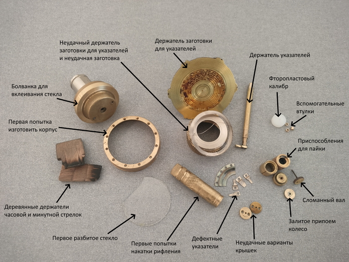 В часах 64 самодельные детали + 44 заклёпки + 30 винтов. Всего 138 деталей