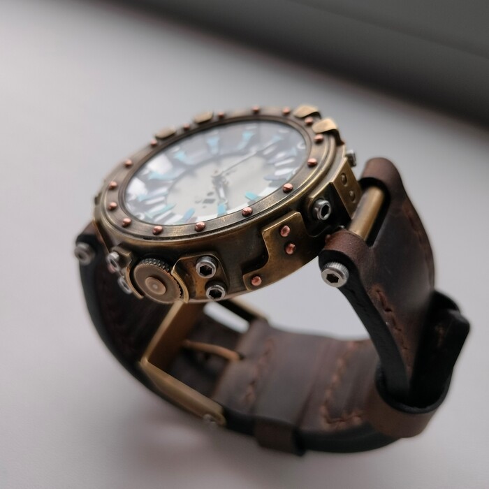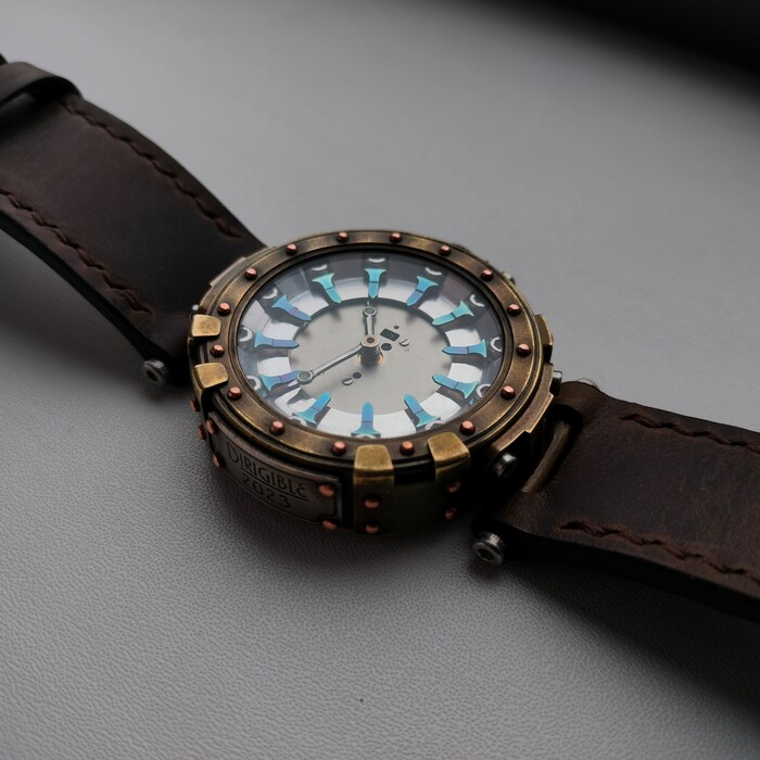 Dirigible 2023 - потому что корпус был сделан в 2023 году. Я искренне надеялся успеть закончить часы до Нового года, но различные обстоятельства и сложность изготовления внутренностей отодвинули срок завершения проекта