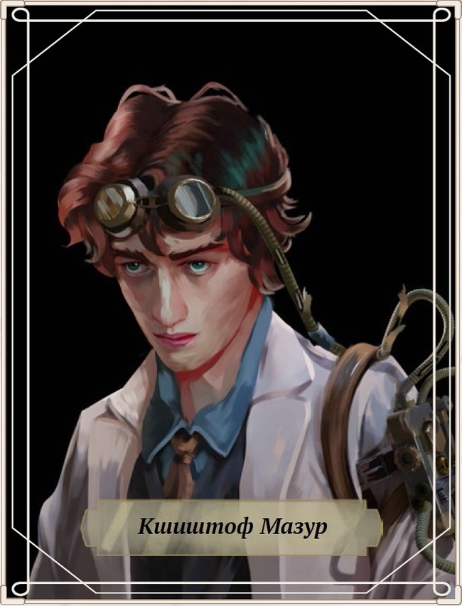 Кшиштоф — подающий большие надежды студент оккультного факультета. Он весьма талантлив и считается одним из лучших техномагов своего возраста, но его мечта — стать магомехаником и известным изобретателем — пока не сбылась. Семья Кшиштофа не очень богата, и ему приходится самому зарабатывать на свою учёбу, так что он был рад, когда Ларри по совету Сары пригласил его в своё агентство.
