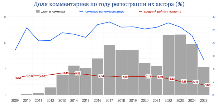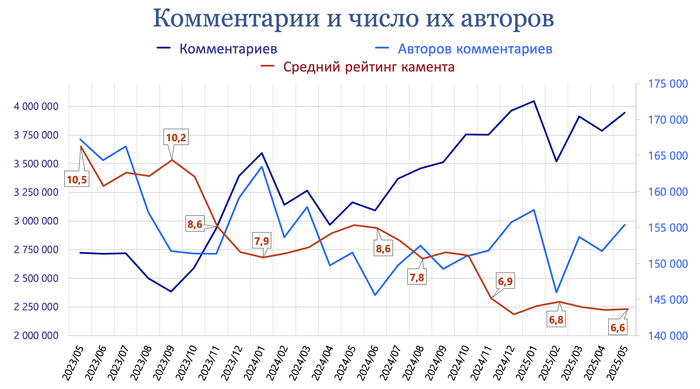 За все время авторов комментариев стало 2 052 364 (на 7 778 больше к предыдущему месяцу).