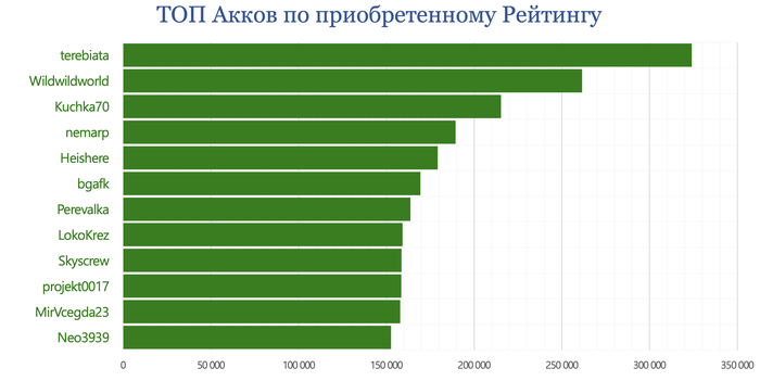 akatosh199512 - постов опубликовано 372, рейтинг за них 48 713; Shiraori - постов 372, рейтинг за них 46 854; Kotbeg0 - постов 361, рейтинг 45 280; ADA.x - постов 341, рейтинг 36 561; lexus82 - постов 341, рейтинг 99 679; unskilid - постов 335, рейтинг 83 813; NeprChic - постов 327, рейтинг 36 623; VerhovniyMemolog - постов 322, рейтинг 231 521; autopicabu - постов 319, рейтинг 73 949; zevgenV - постов 310, рейтинг 54 251.