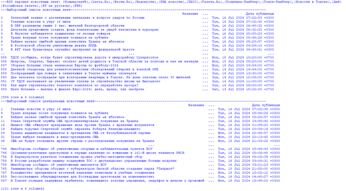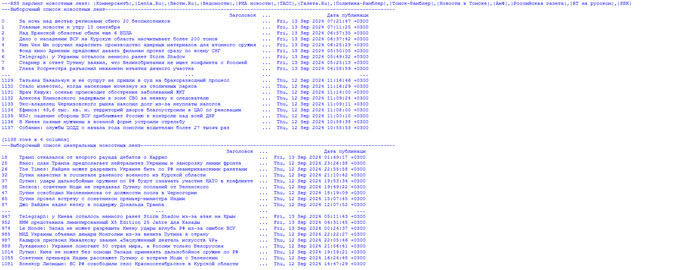 16.09.2024 г. выполнил RSS-парсинг популярных новостных лент в России.