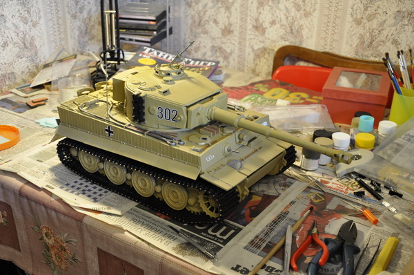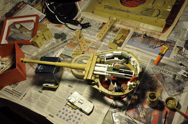 Увы, фотографий самого процесса покраски и сборки нет, зато нашел момент с переделкой башни.